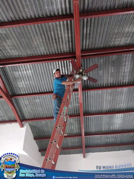 Electricistas Municipales llevaron a cabo la instalación de lámparas, de la Iglesia Católica ubicada en la Aldea de Venecia, mostrando que juntos se pueden lograr grandes cosas.