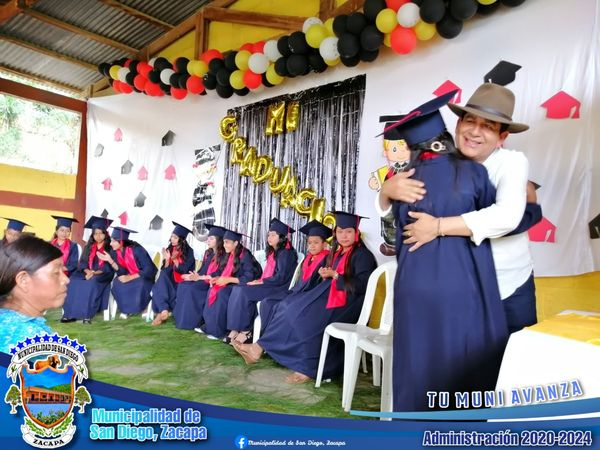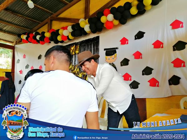 En compañía de Maestras de dicho establecimiento, Directora: Sandra Carolina Villeda Esteban; Profesora de sexto grado: Elsa Romelia Villeda Calderón de Osorio; Nuestro Alcalde brindó un mensaje de felicitación, tanto para los padres de familia, como para los recién graduados de primaría.
