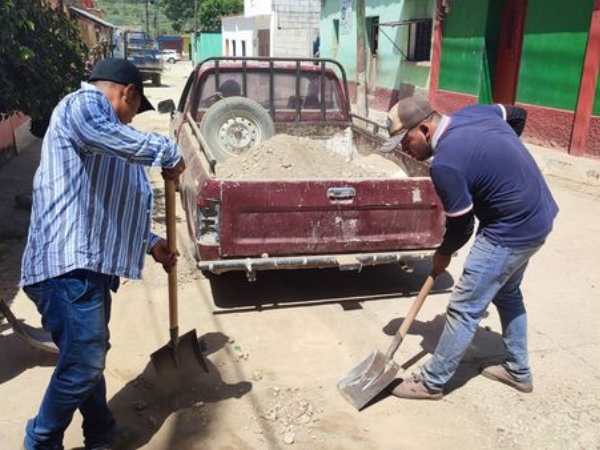 Trabajadores de la cuadrilla municipal, trabajando por un San Diego mas limpio y más bello, ya que cada vez que llueve, se cubren de lodo...